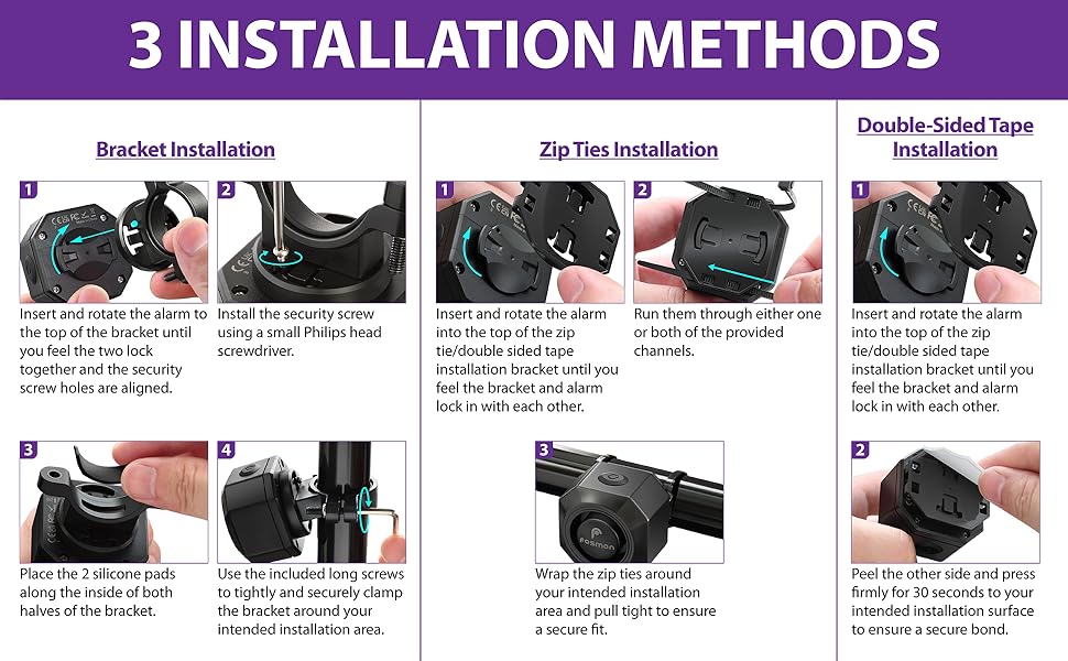 Gran pitido de la alarma de 110 db. Con 3 tonos diferentes. Con 7 niveles de sensibilidad. 3 Niveles de volumen. Impermeable y resistente a la lluvia. Varias formas de instalación.